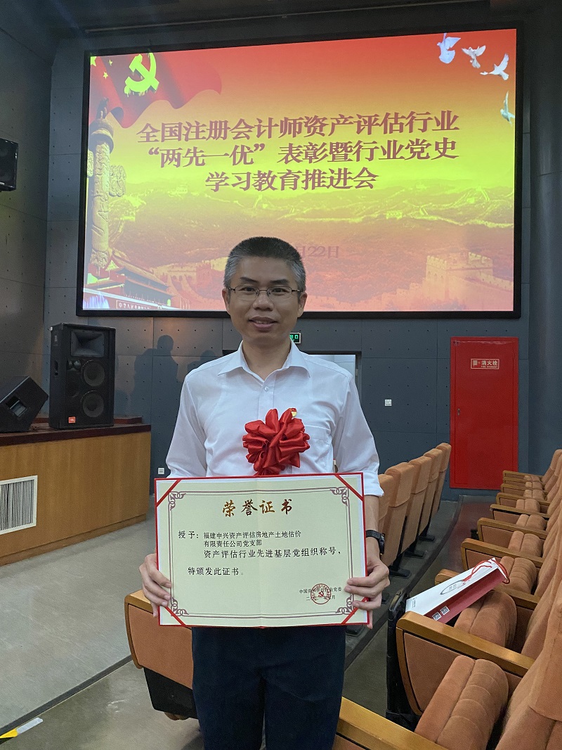 中兴评估党支部及党员代表钱仁煌同志荣获全国资产评估行业“先进基层党组织”和“优秀共产党员”称号。公司党支部书记陈飞和钱仁煌同志共同参加了以上表彰大会。