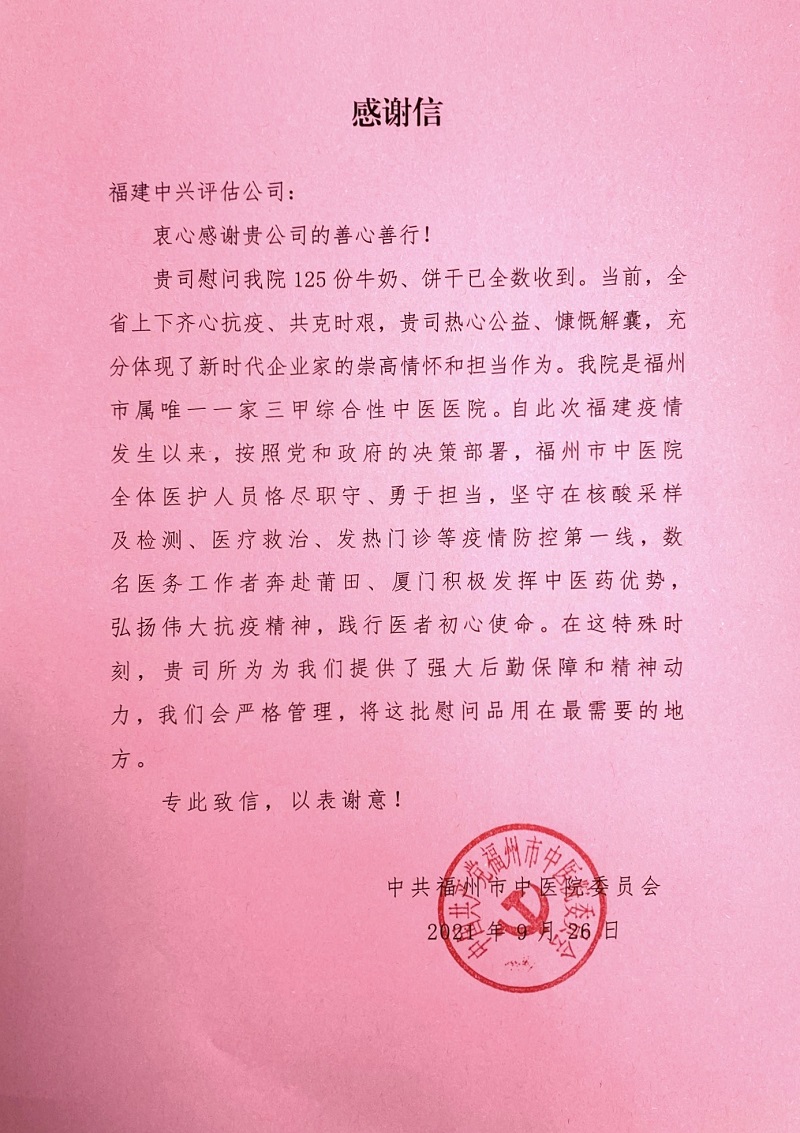 2021年9月25日,公司党支部和董事会召开联席会议,会议就支持厦门疫情防控事项做出决定:为充分彰显中兴人以党建为引领,热心社会公益事业、弘扬行业正能量的情怀和担当,为支持厦门人民抗击新冠肺炎疫情,公司党支部和董事会共同决定,向厦门市慈善总会捐款人民币伍万元整,专项用于厦门疫情防控。会议同时安排厦门分公司的员工在做好自身防疫防护的前提下,积极参与厦门疫情防控的志愿者行动。我们坚信,厦门以及福建其他相关地区此轮疫情防控的歼灭战在党和政府的坚强领导下,一定会早日取得胜利!