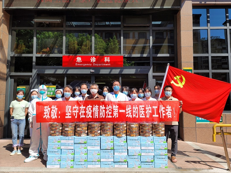 2021年9月26日,公司党支部全体党员和青年入党积极分子走进福州市中医院,向坚守在核酸采样及检测、医疗救治、发热门诊等疫情防控第一线,以及奔赴莆田、厦门等疫情前线支援的医护工作者表示诚挚的慰问,并送去暖心的慰问品。可敬可爱的医护工作者弘扬的伟大抗疫精神和医者仁心是我们学习的榜样,我们应当向白衣执甲的最美逆行者致以崇高的敬意!