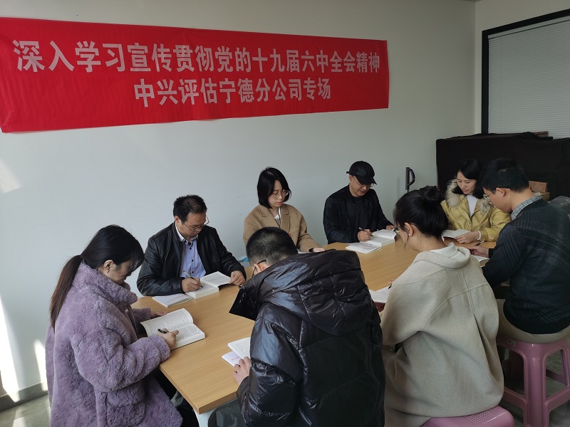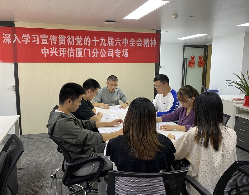 中国共产党第十九届中央委员会第六次全体会议于2021年11月8日至11日在北京胜利召开,全会审议通过了《中共中央关于党的百年奋斗重大成就和历史经验的决议》。全会公报传遍祖国大江南北,全会的精神激励着每一个共产党员、每一个中华儿女。2021年11月12日,中兴评估党支部和公司董事会迅即召开联席会议,号召并安排公司全体员工深入学习宣传贯彻全会精神。