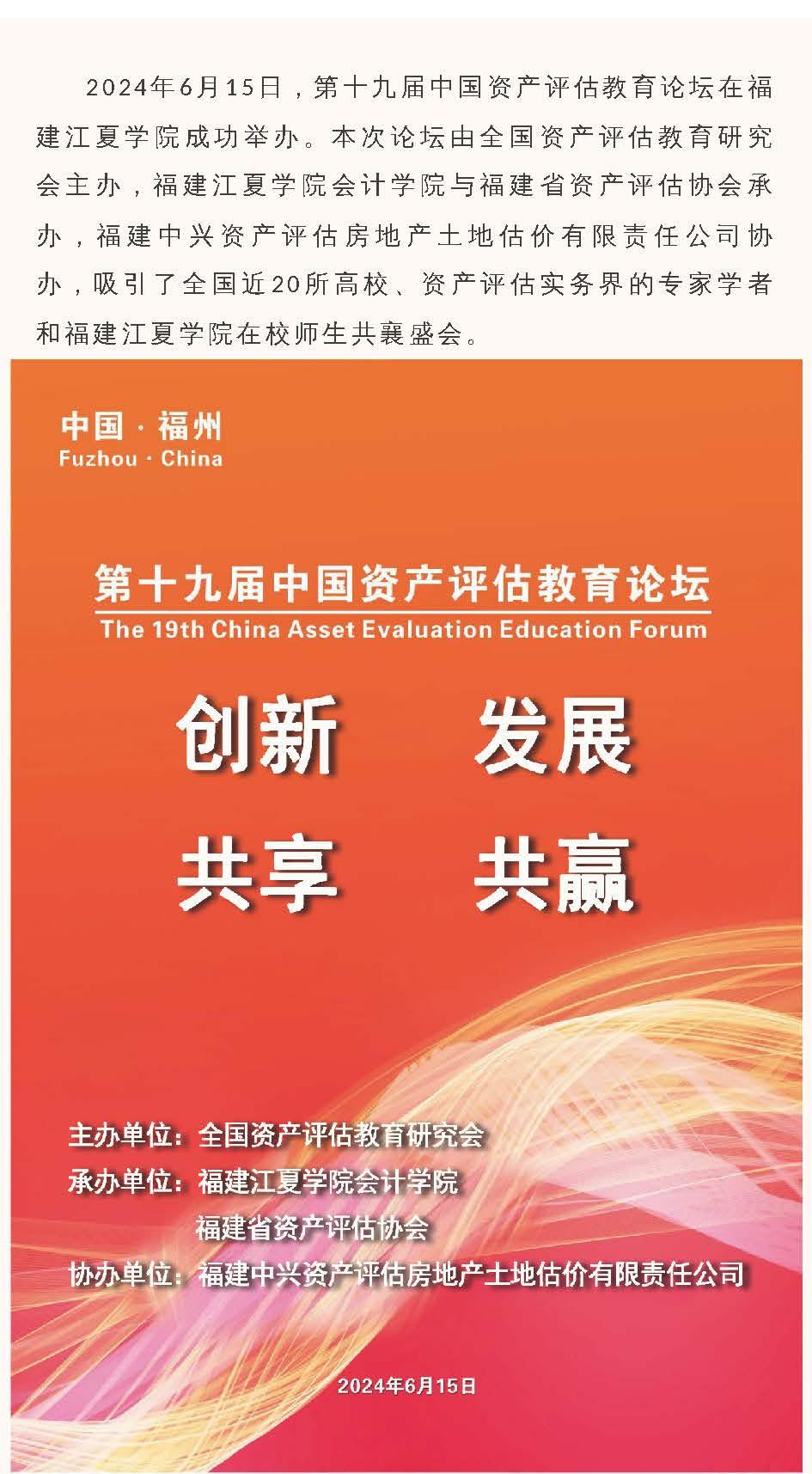 热烈祝贺第十九届中国资产评估教育论坛成功举办