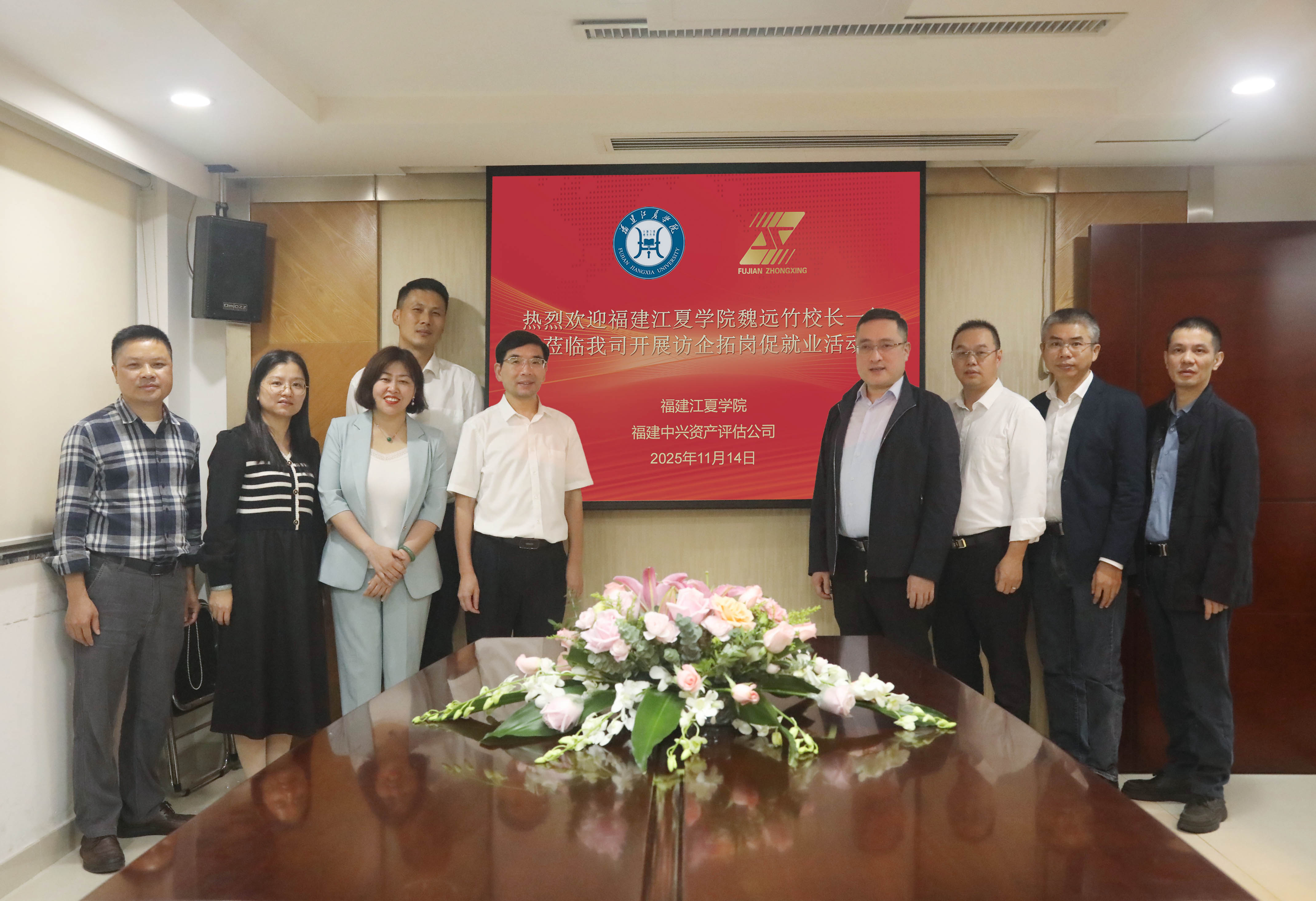 初冬阳光轻洒,合作暖意融融。2025年11月14日,福建江夏学院校长魏远竹带领学校党政办公室、学生工作部、会计学院及资产评估系等所属单位相关负责人莅临中兴评估公司开展访企拓岗促就业专项行动。