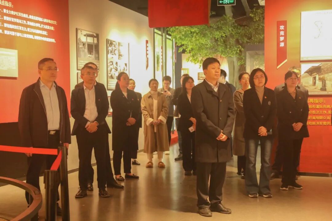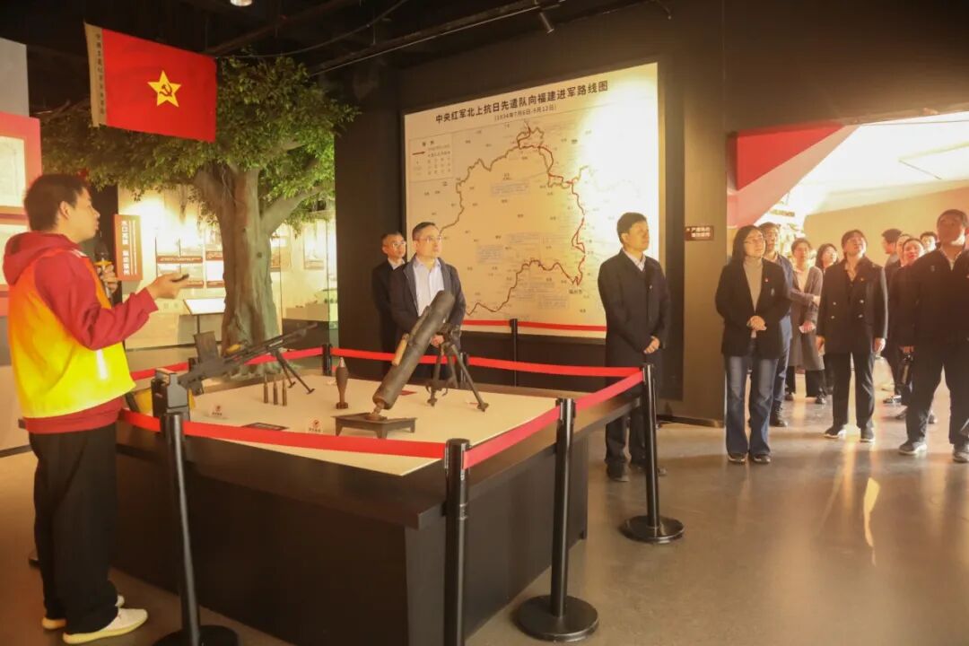 同志们怀着崇敬之心步入陈列馆,红色历史的厚重感扑面而来,一件件珍贵的文物诉说着革命前辈浴血奋战的英雄壮举。在讲解员的引导下,我们循着 “临危受命”、 “进军福建”、“转战浙皖赣”、“陷入重围”、“浴火重生”五大陈列板块的参观顺序,全面学习了工农红军北上抗日先遣队于1934年从中央苏区瑞金出发,历经6个月、行程5600公里,深入闽浙皖赣掩护中央红军战略转移的英勇奋战历史。